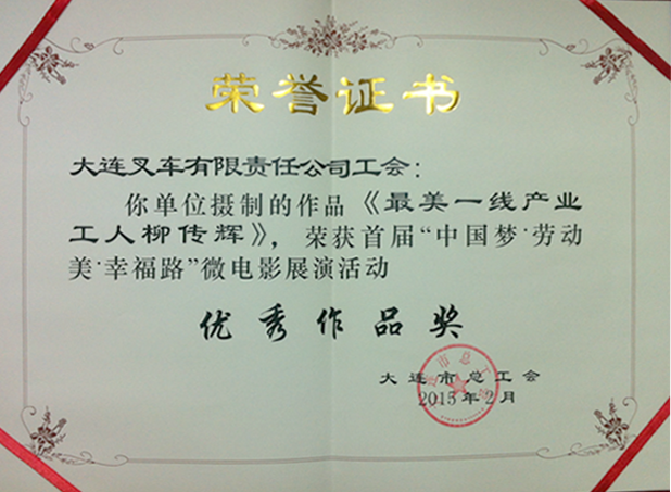 近日,大連市總工會(huì)對(duì)于2014年年末舉辦的“中國(guó)夢(mèng)●勞動(dòng)美●幸福路”微電影展演活動(dòng)的評(píng)選結(jié)果進(jìn)行了通報(bào),大連叉車有限責(zé)任公司組織拍攝的微電影《最美一線工人柳傳輝》榮獲“優(yōu)秀作品獎(jiǎng)”。
